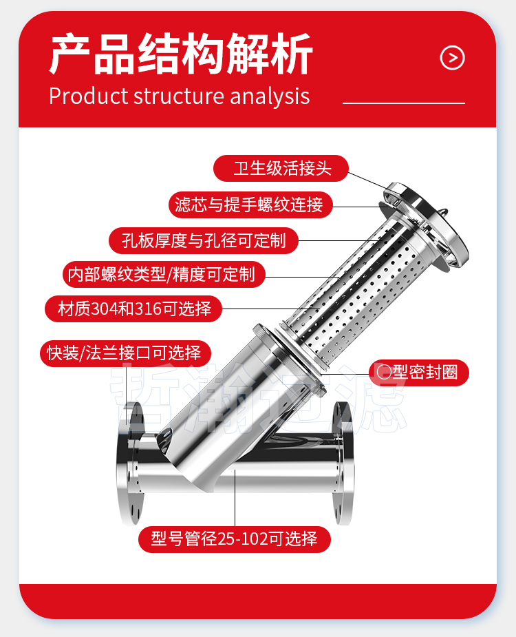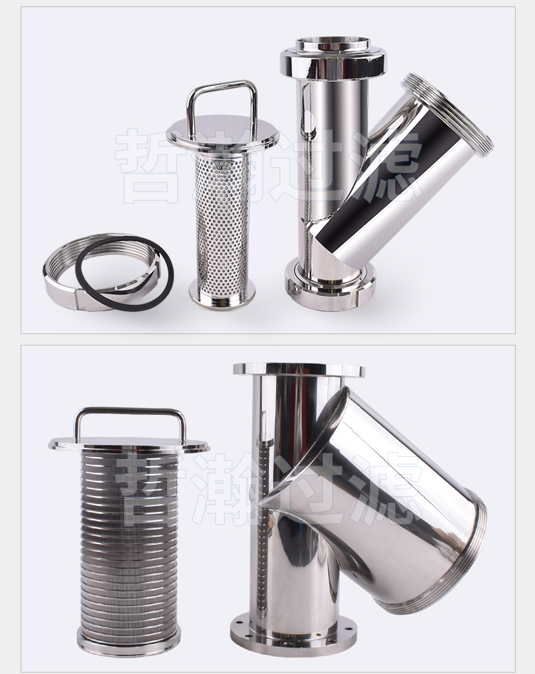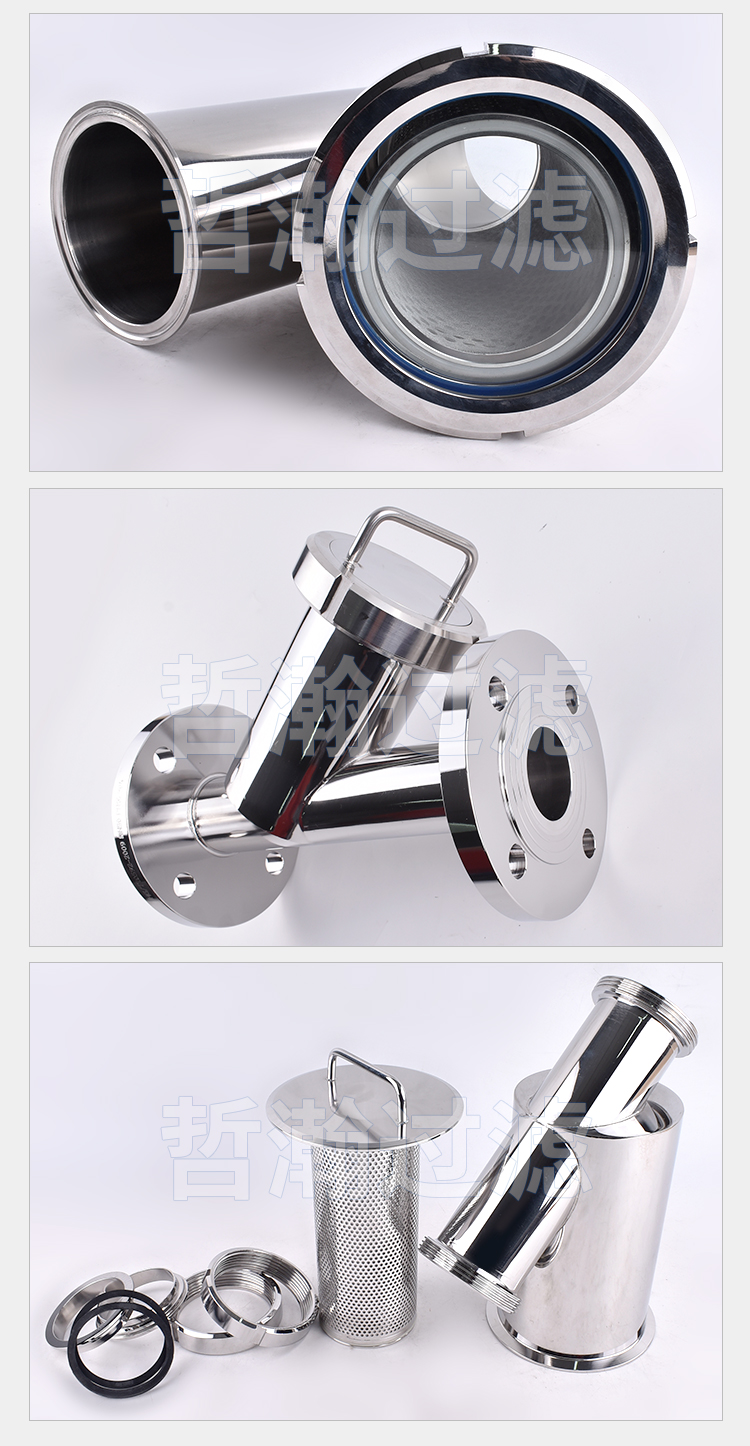 不锈钢Y型过滤器是输送介质管道上不可缺少的一种装置,通常安装在减压阀、泄压阀、定水位阀或其它设备的进口端,用于除去流体中少量固体颗粒,保护阀门及设备的正常工作。其由主管、滤网腔与排污口构成,滤网采用304或316L不锈钢编织而成,孔径精度可达微米级,可按需定制10 - 500目滤网。当流体从主管流入,杂质被滤网拦截,洁净流体经分支管流出,沉积杂质则通过底部排污口定期排出。