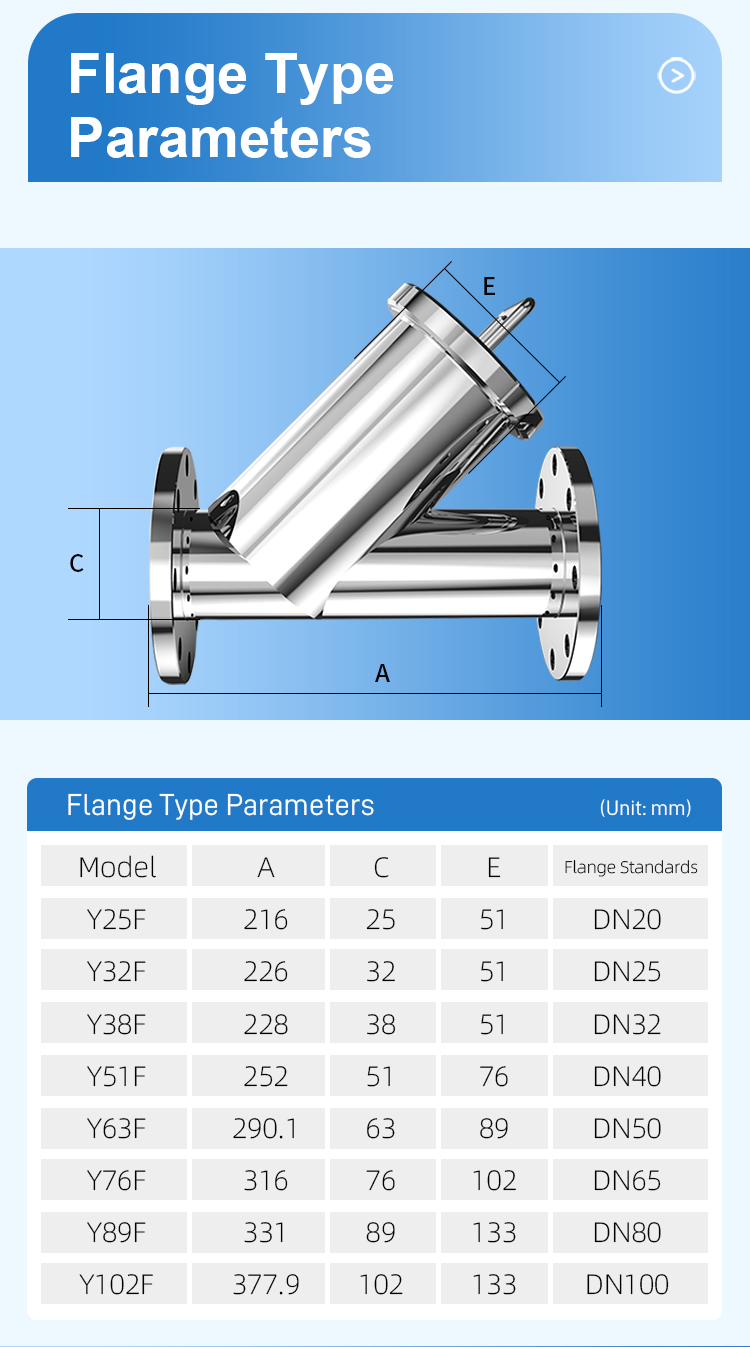 The stainless steel Y-type filter is an indispensable device on the pipeline for transporting media. It is usually installed at the inlet end of pressure reducing valves, safety valves, constant water level valves or other equipment to remove a small amount of solid particles from the fluid and protect the normal operation of valves and equipment. It is composed of a main pipe, a filter screen cavity and a sewage outlet. The filter screen is woven from 304 or 316L stainless steel, with a pore size accuracy of up to the micron level. Customized filter screens ranging from 10 to 500 mesh can be provided as required. When the fluid flows in from the main pipe, impurities are intercepted by the filter screen. The clean fluid flows out through the branch pipe, and the deposited impurities are regularly discharged through the bottom sewage outlet.