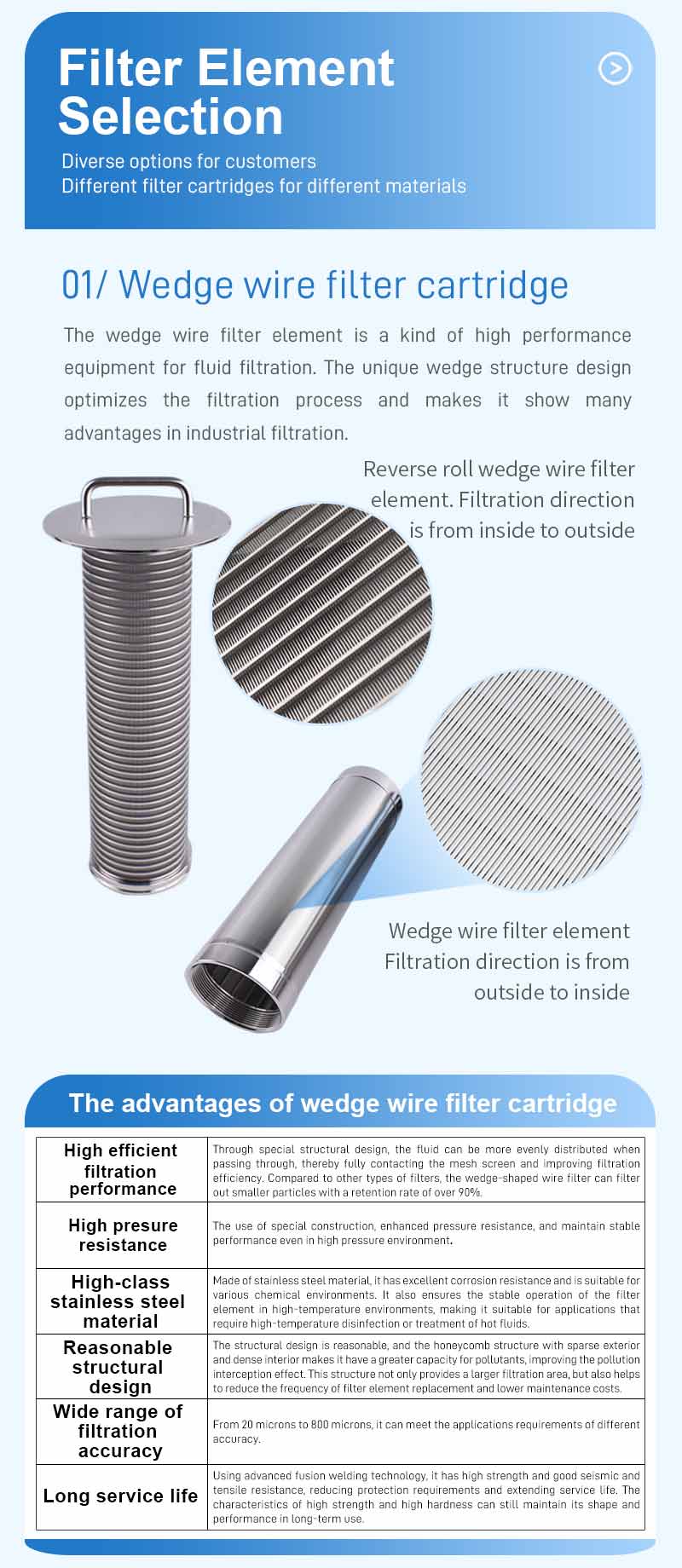 Wide precision range: The filtration precision can be selected between 25 microns and 5000 microns according to requirements.