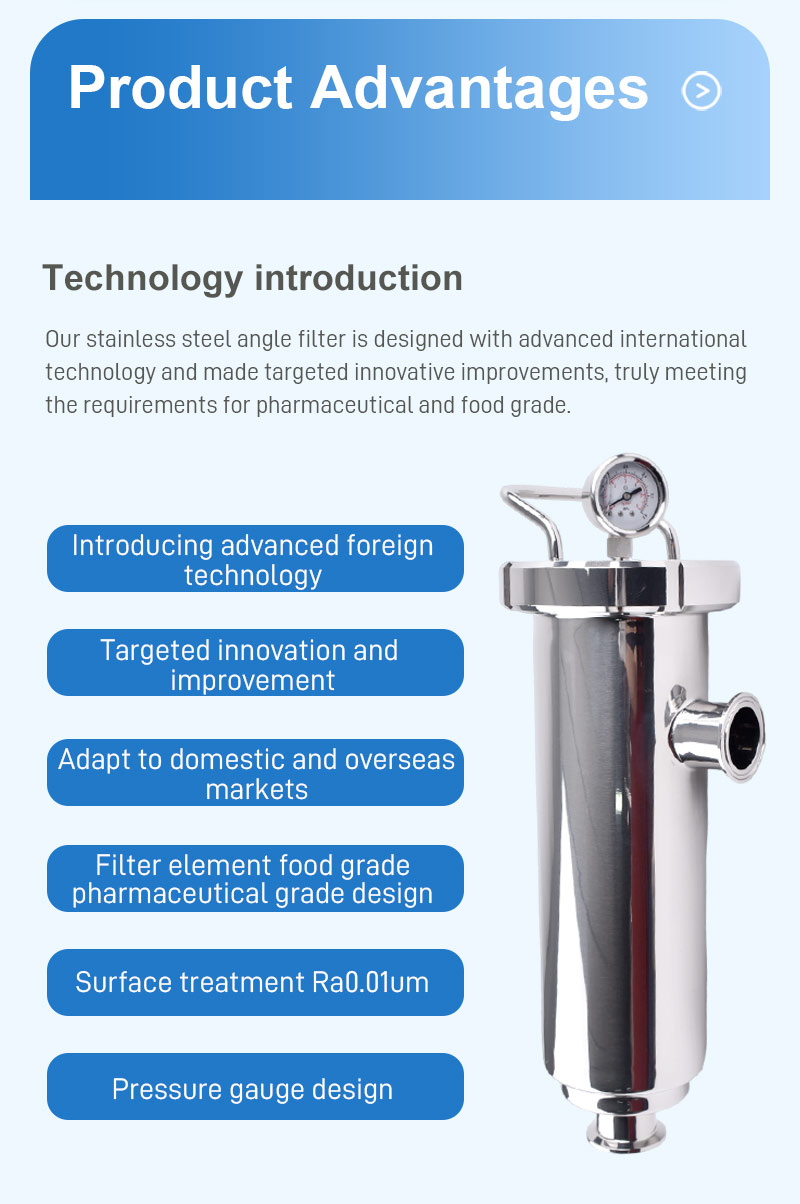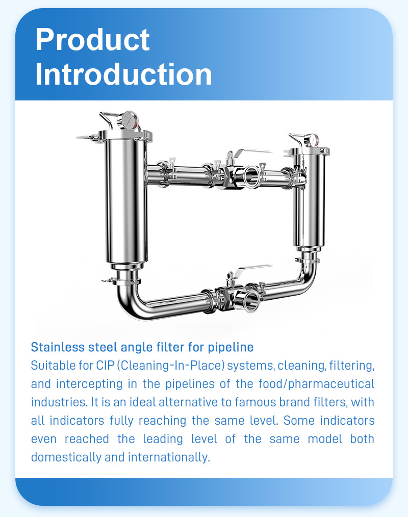 The stainless steel Angle filter is a device used to filter impurities in liquids. Its inlet and outlet are distributed at a 90° Angle. The main body is made of stainless steel and has structures such as filter elements inside. It belongs to the unit-type filtration equipment and is available in single and double types, capable of achieving liquid filtration and precision filtration.