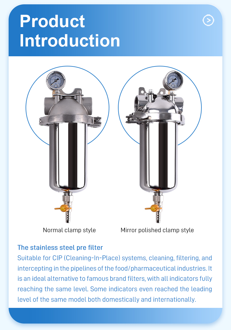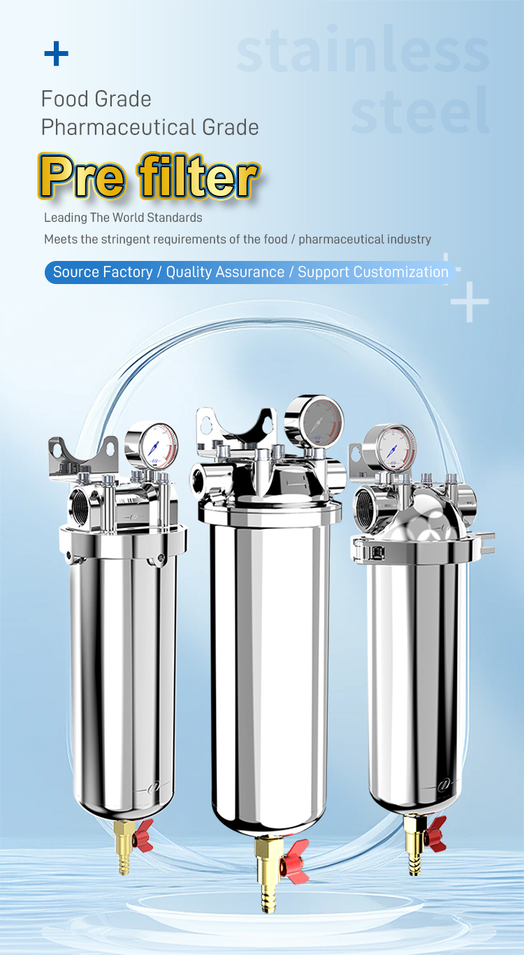 Stainless steel industrial pre-filters are installed at the front end of industrial pipelines to conduct preliminary filtration of fluids. They can effectively remove suspended particles, impurities, etc. from the fluids, protecting the normal operation of downstream equipment.