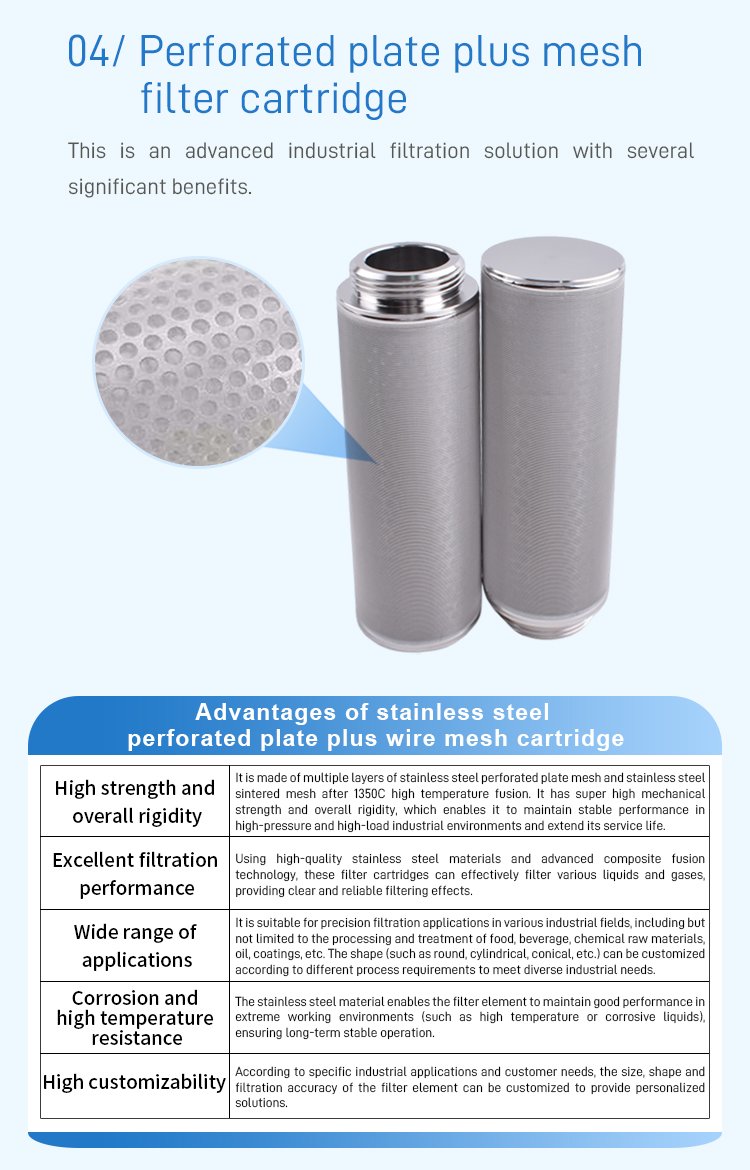- Stainless steel perforated plate mesh filter element