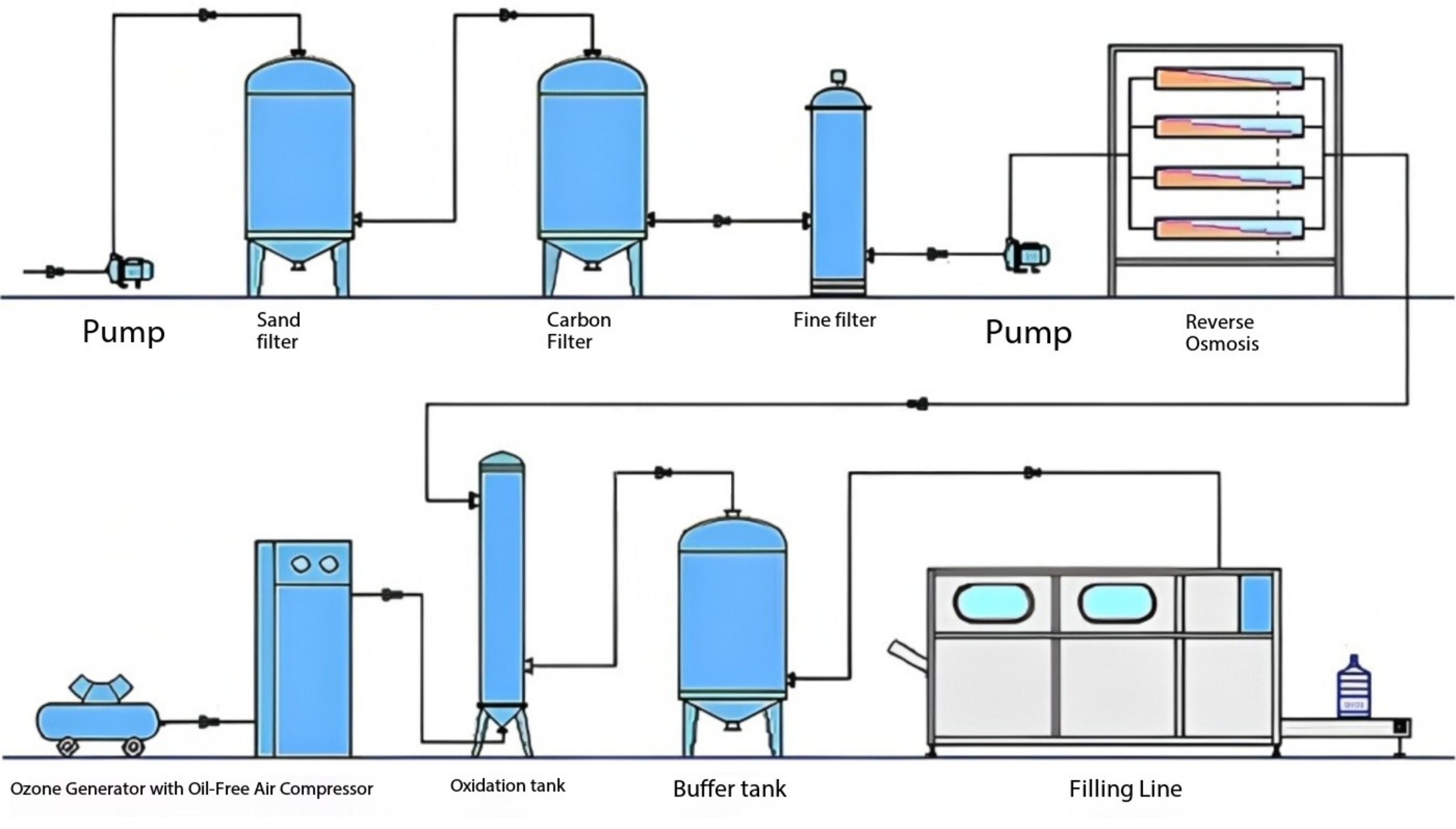 Production flow chart of mineral water beverages