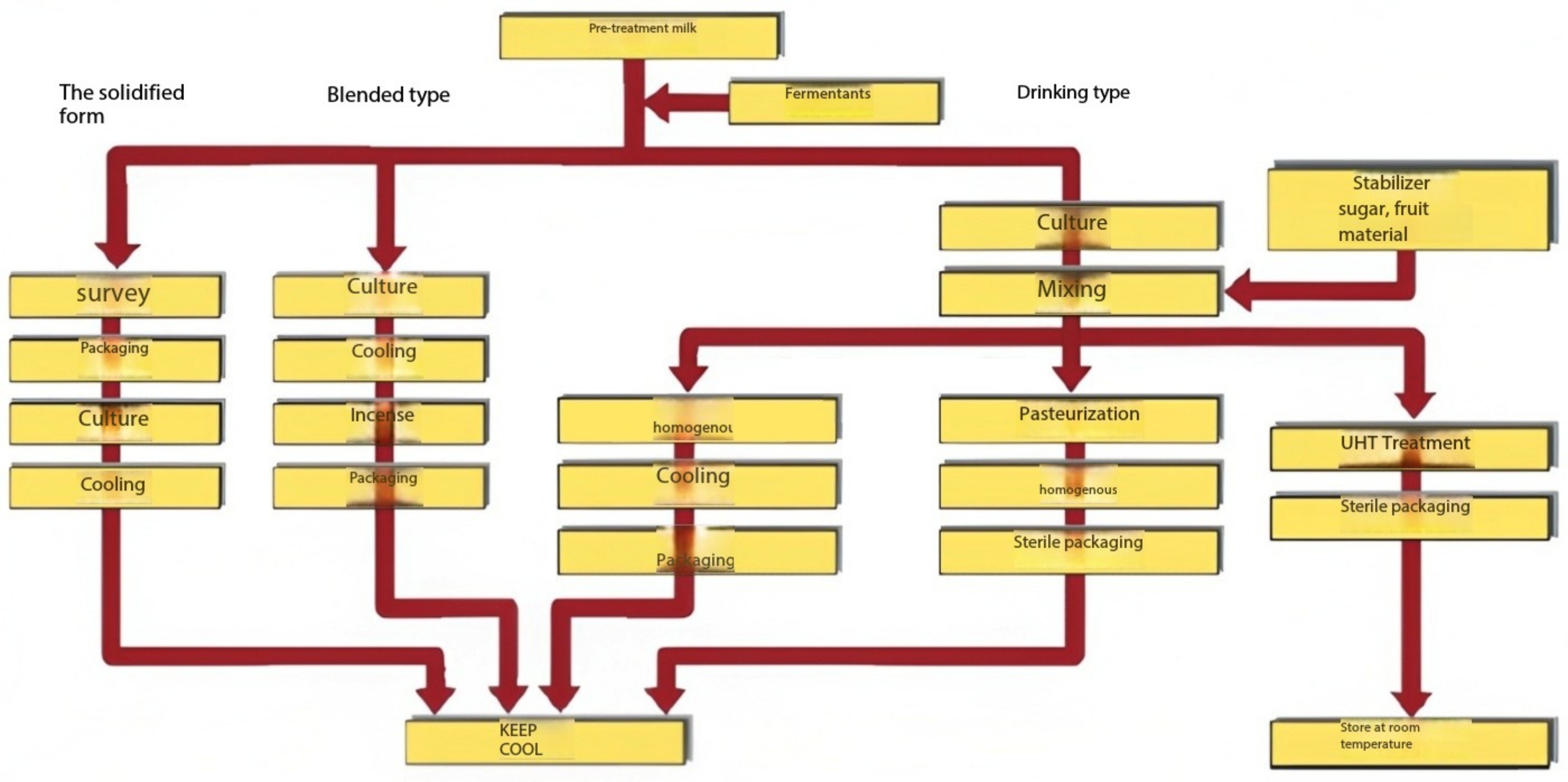 Production flow chart of set, stirred and drinking yogurt