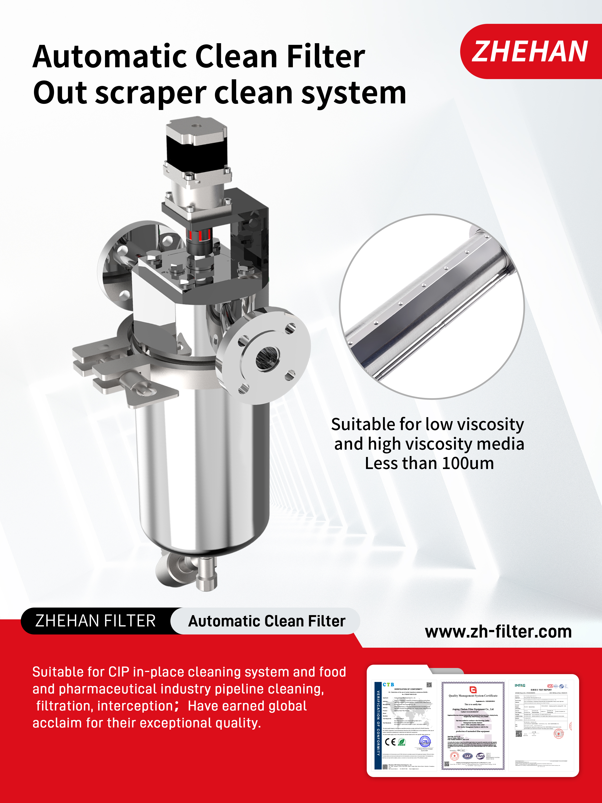 The external scraper type self-cleaning filter automatically removes impurities on the outer surface of the filter element through mechanical scraping and can continuously filter online.