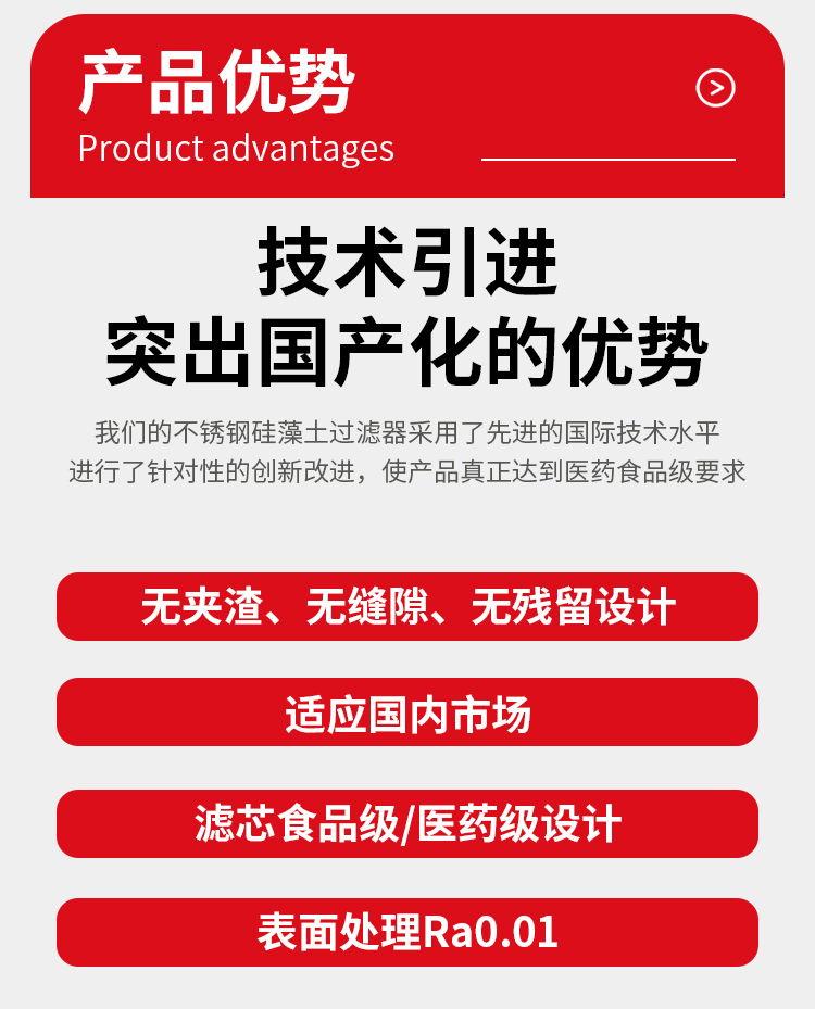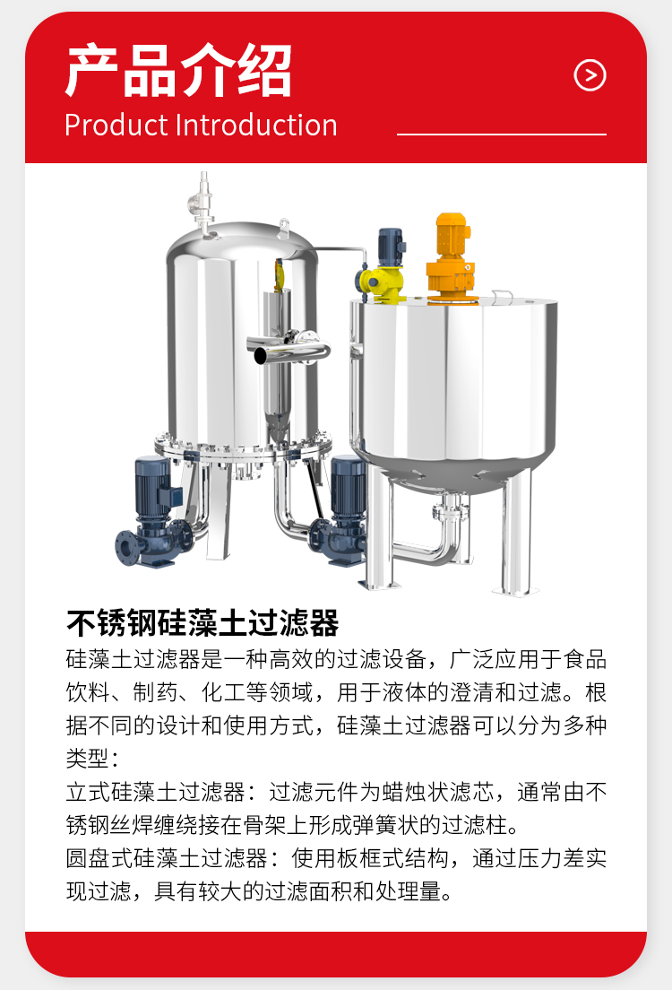 - 滤材可再生:部分类型的硅藻土过滤器滤元可再生,如可再生式硅藻土过滤器停机后,罐内硅藻土再开机时可重复使用,节省硅藻土和反冲洗水量。