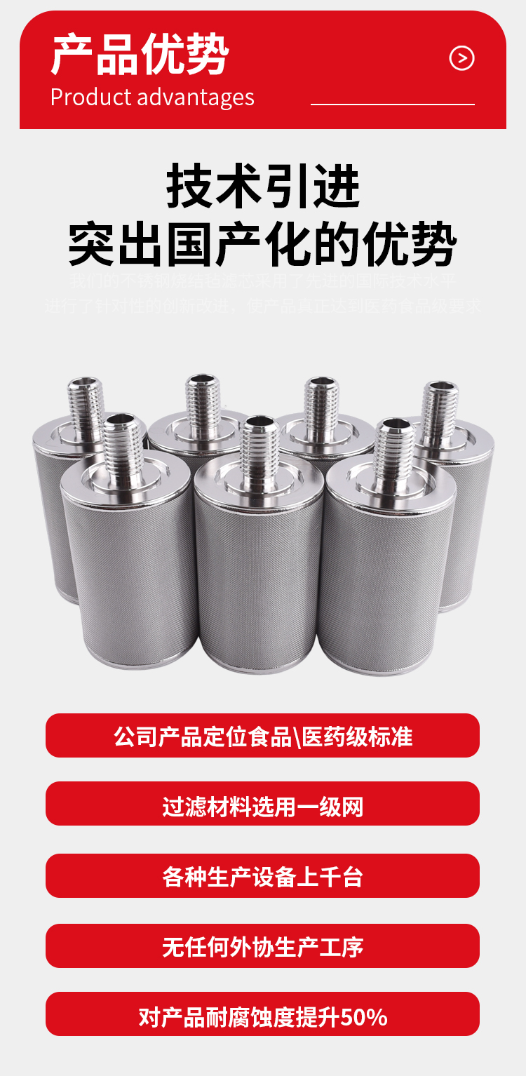 - 气体过滤方面:对高温气体、蒸汽、压缩空气、催化剂等进行过滤、除尘、除菌、除油雾等;还可用于气体净化和气体缓冲等。